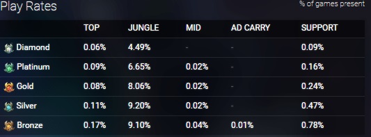 Như bảng phân tích trên, bạn có thể thấy ở các rank từ Bạch Kim trở xuống, Amumu sở hữu một tỷ lệ thắng khủng khiếp ( hơn 55%). Sát thương đủ, hiệu ứng khống chế mạnh, độ trâu bò cũng không còn gì phải bàn cãi. Thật sự, Xác ướp u sầu là lựa chọn cực tốt cho các bạn muốn leo rank hiệu quả.
