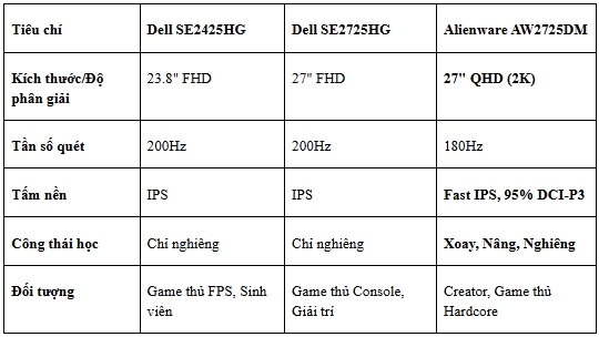 Dell tiếp tục khẳng định vị thế dẫn đầu thị trường toàn cầu với bộ ba màn hình gaming mới, trải dài từ phân khúc phổ thông đến cao cấp. Bài viết này sẽ phân tích chi tiết ba mẫu SE2425HG, SE2725HG và Alienware AW2725DM để giúp bạn chọn được sản phẩm phù hợp nhất.