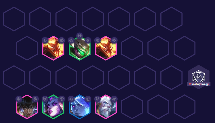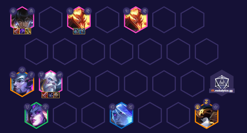 Cấp 7 thì đội hình này sẽ rất mạnh và gần như hoàn thiện với bộ đôi Graves và Nilah.