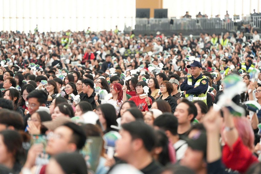 Từ sáng 21/12, hơn 10.000 khán giả đã đổ về VEC để check-in và tham gia các hoạt động. Sân khấu hoành tráng với màn hình LED khổng lồ giúp mọi người cảm nhận như Faker đang ở ngay trước mắt, dù ngồi ở vị trí xa.