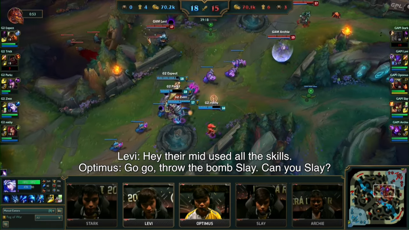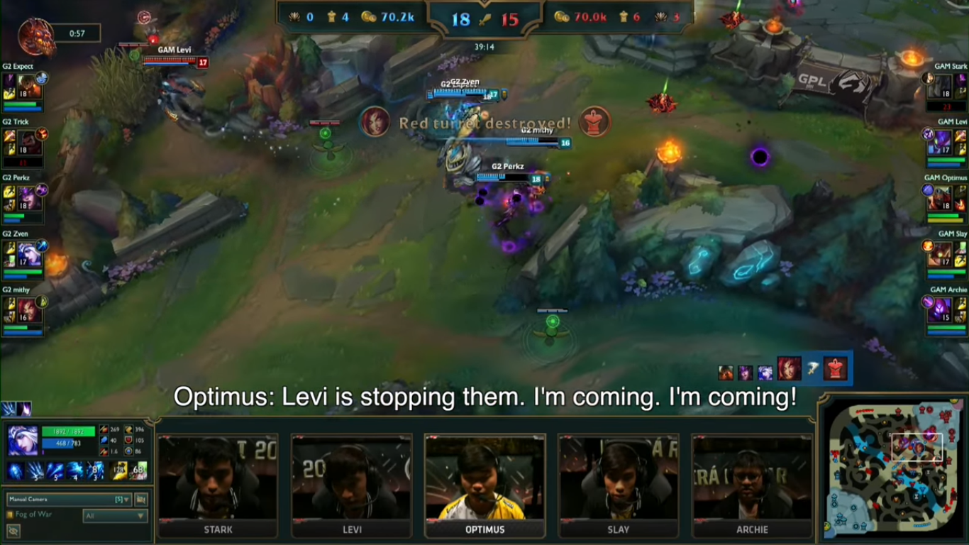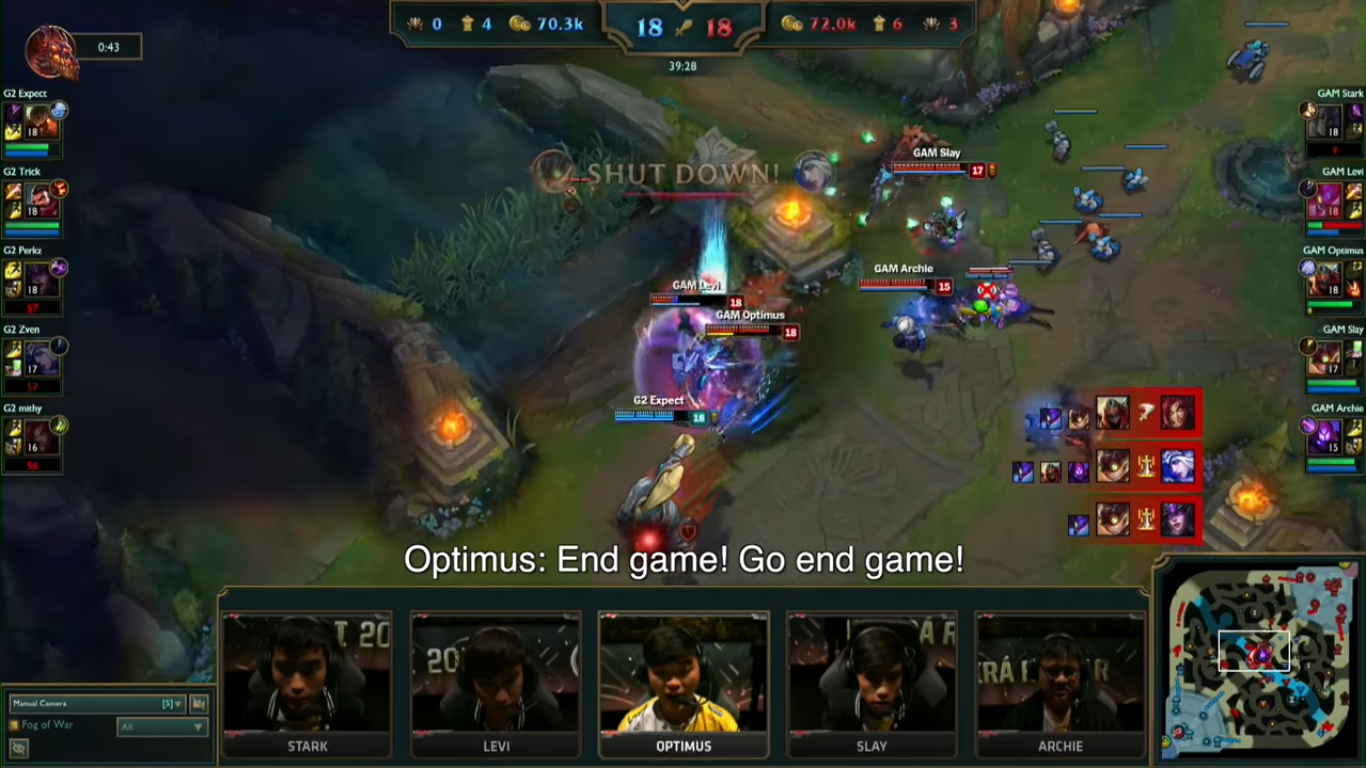 Sau khi Levi báo rằng Syndra bên kia đã hết chiêu thì cả đội hình GAM đã tràn lên