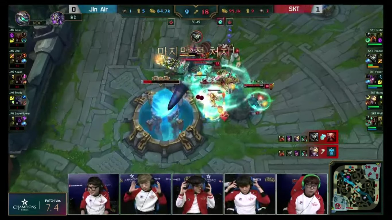 Nếu bạn đọc vẫn còn nhớ vào ngày 07/03 vừa rồi SKT T1 đã đối đầu với JAG sau khi lượt về đại thắng kt Rolster 2-1 vô cùng kịch tính. Ở 2 ván đấu liên tiếp là các lợi thế áp đảo được tập thể SKT T1 dựng lên trước đối thủ JAG. Ở 2 ván đấu Bang đều có cho mình vị tướng làm lên tên tuổi Ezreal nhưng Huni và Profit là 2 MVP của 2 ván đấu.