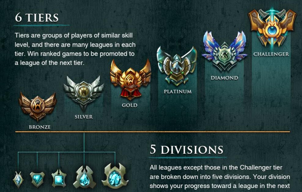 Riot muốn rằng tất cả mọi người đều có chung 1 khởi đầu như nhau, bất kể là họ có đạt được Top 1 Thách đấu với vài ngàn Elo đi chăng nữa. Chính vì thế, cho dù mùa giải trước bạn có bạn có sở hữu 1 tỉ lệ thắng cao ngất, nằm trong Top Thách đấu thì kể cả khi bạn thắng 10/10, bạn vẫn sẽ đạt được mức rank tối đa là Bạch kim 1 mà thôi. Tuy nhiên, nếu mức rank cũ của bạn thấp hơn Bạch kim 1 và lại để thua vô tội vạ, cơ hội để bạn ”đội sổ ” ở Đồng 5 là rất cao.