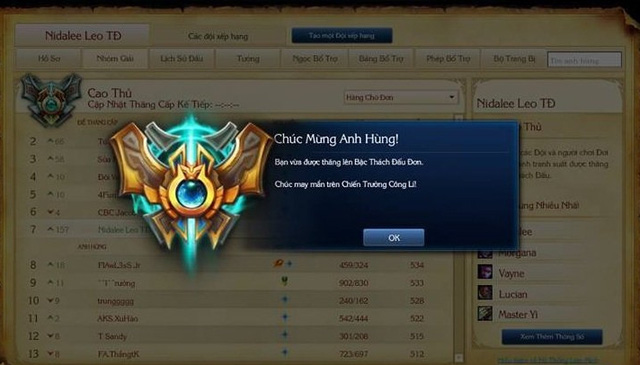 Thứ hai, như đã nói ở trên, kể cả Thách đấu hay Vàng, Bạch kim đều có mức rank tối đa là Bạch kim 1 như nhau. Nên việc bạn sẽ đụng độ những người chơi hàng Top, game thủ chuyên nghiệp trong các trận đánh là đều xảy ra như cơm bữa. Và bạn đã biết rồi đó, đối đầu với các Cao thủ top 1 khó xơi hơn nhiều so với các thành phần cày thuê đấy.