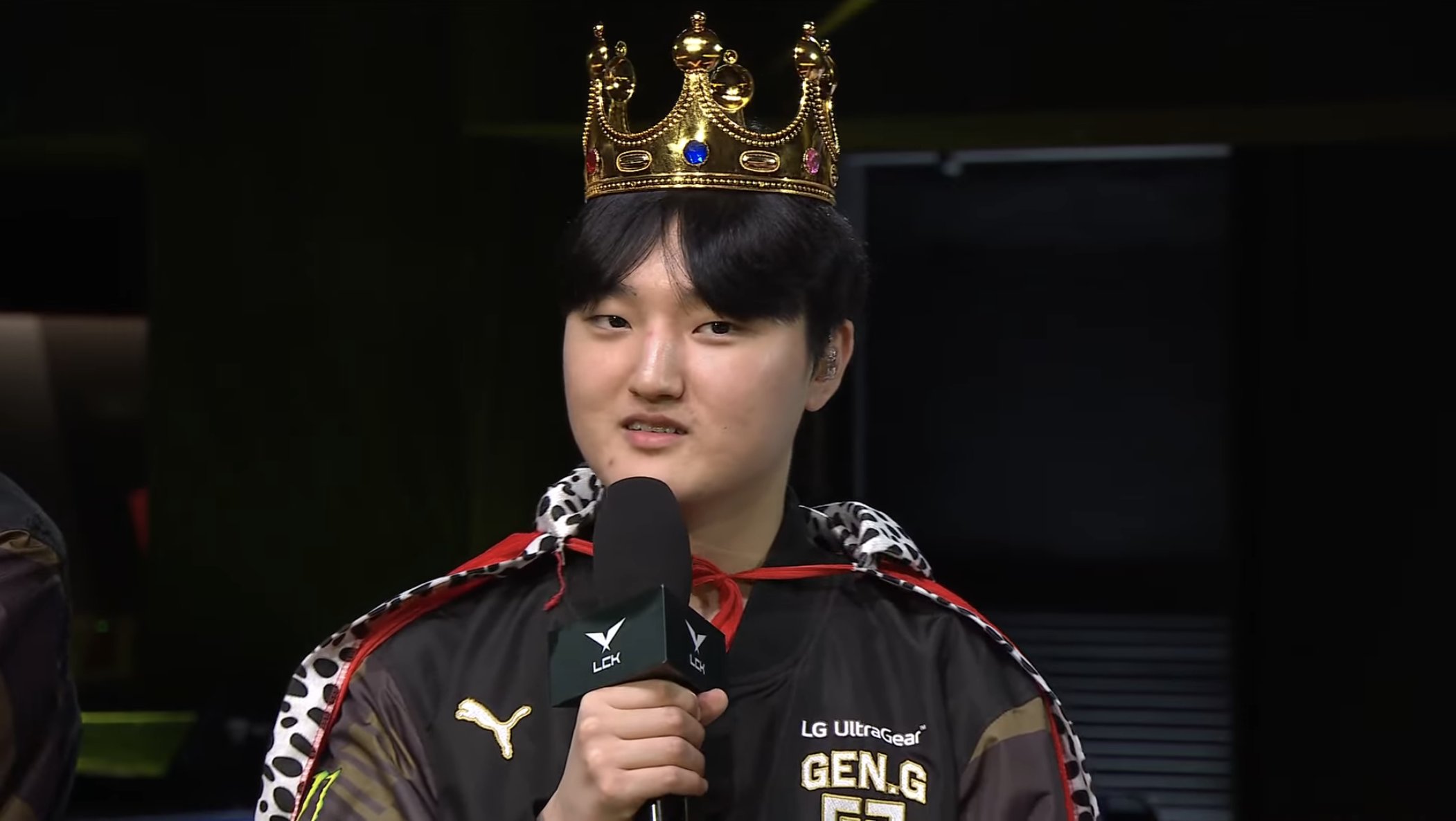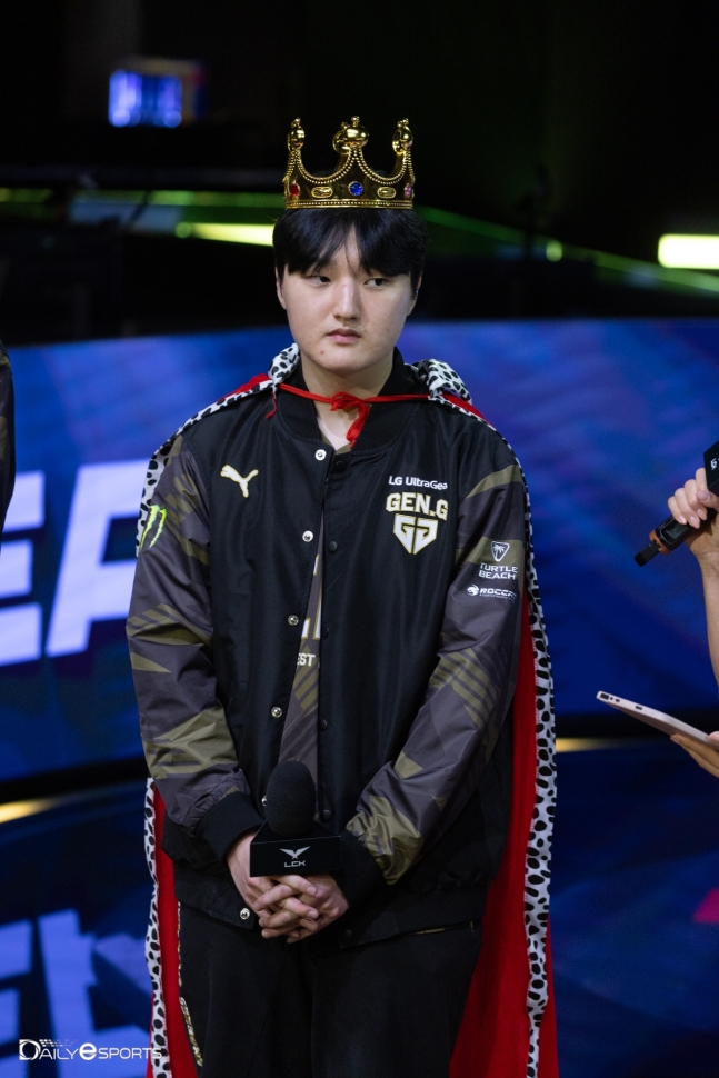 Ngay sau đó, nhóm sản xuất chương trình đã tổ chức một “buổi lễ bổ nhiệm hoàng tử” trao vương miện, áo choàng và quyền trượng cho Peyz. “Giờ tôi phải đi gặp ‘công chúa’ Lehends đây!” – xạ thủ của GEN khẳng định mình sẽ ăn vận thế này ngay khi nhận được POG và anh đã giữ lời trong cuộc phỏng vấn mới nhất trên sân khấu chính LoL Park. “Đã lâu rồi tôi mới lại được trải nghiệm ván 3 nên nó vừa thú vị lại vừa khó khăn” – Peyz trả lời câu hỏi của MC về cuộc đấu với DK. “Tôi không biết về thành tích đối đầu (giữa GEN vs DK) nhưng tôi vui vì đã tiếp đà chiến thắng.”