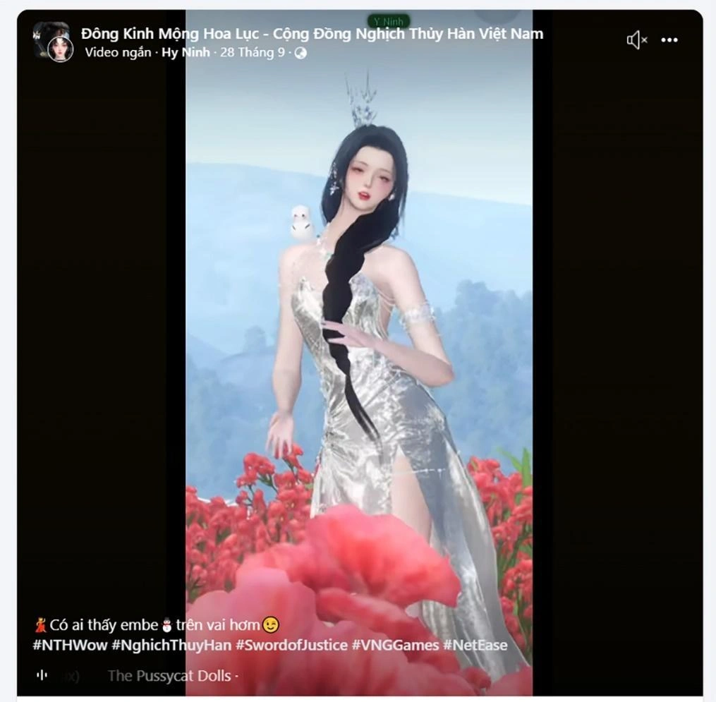 Nữ hiệp này có nick name là Hy Ninh trong nhóm cộng đồng Nghịch Thủy Hàn. Cô có biệt tài quay các video nhảy nhạc phong cách TikTok đầy điệu nghệ với bối cảnh ngay trong thế giới của Nghịch Thủy Hàn. Không chỉ 1 mà game thủ này đã thực hiện hàng loạt video nhảy các bài nhạc khác nhau với nhân vật nữ trong bộ thời trang lấp lánh cực hợp thời.