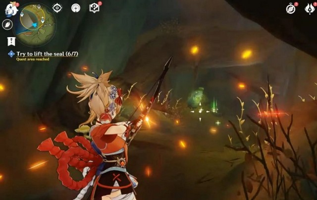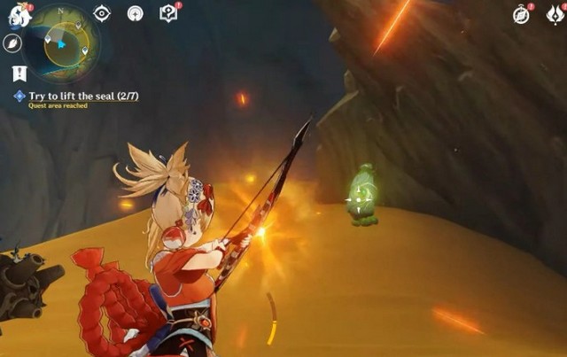 Vị trí cuối cùng là ở đầu phía nam xa xôi của vòng tròn lớn màu vàng được sử dụng để điều hướng nhiệm vụ. Phá hủy cái này sẽ có Paimon nói chuyện một chút trước khi người chơi được yêu cầu nói chuyện với Arama để tiếp tục nhiệm vụ Genshin Impact này.