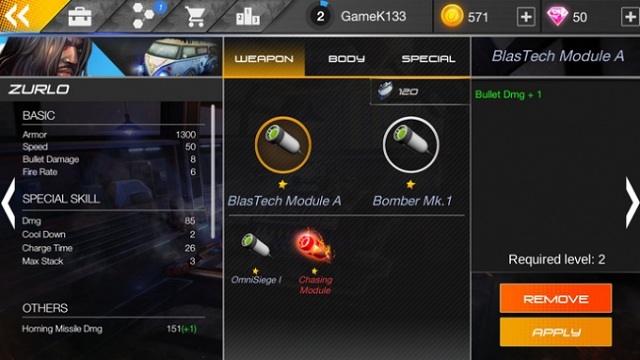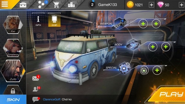 Để tăng thêm phần thú vị, game còn mang tới cho game thủ hệ thống nâng cấp trang bị, bạn có thể cải thiện chỉ số chiến đấu cho những chiếc xe của mình bằng cách lắp ráp thêm 2 bộ trợ súng ống, thân xe hay phần lốp để cứng cáp hơn trước các loạt đạn tấn công từ kẻ địch. Mỗi món đồ bạn nâng cấp sẽ tăng thêm điểm thuộc tính khác nhau giúp cho người chơi thêm phần trăm cơ hội giành chiến thắng trong cuộc đua đầy nguy hiểm.