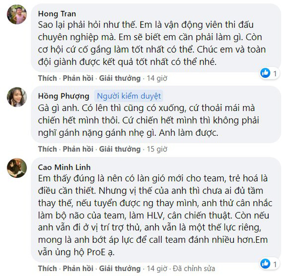 Dưới quan điểm của ProE, nhiều người bày tỏ thấy anh chàng này không phải là tuyển thủ "có lỗi" nhất trong đội hình Team Flash. Người hâm mộ cũng dành nhiều lời động viên cho ProE và mong muốn tuyển thủ này cùng Team Flash chơi hết mình và có được kết quả tốt nhất. Một số khác cũng mong muốn sẽ sớm có làn gió mới cho Team Flash nhưng vai trò của ProE là rất khó thay thế trong một sớm một chiều.