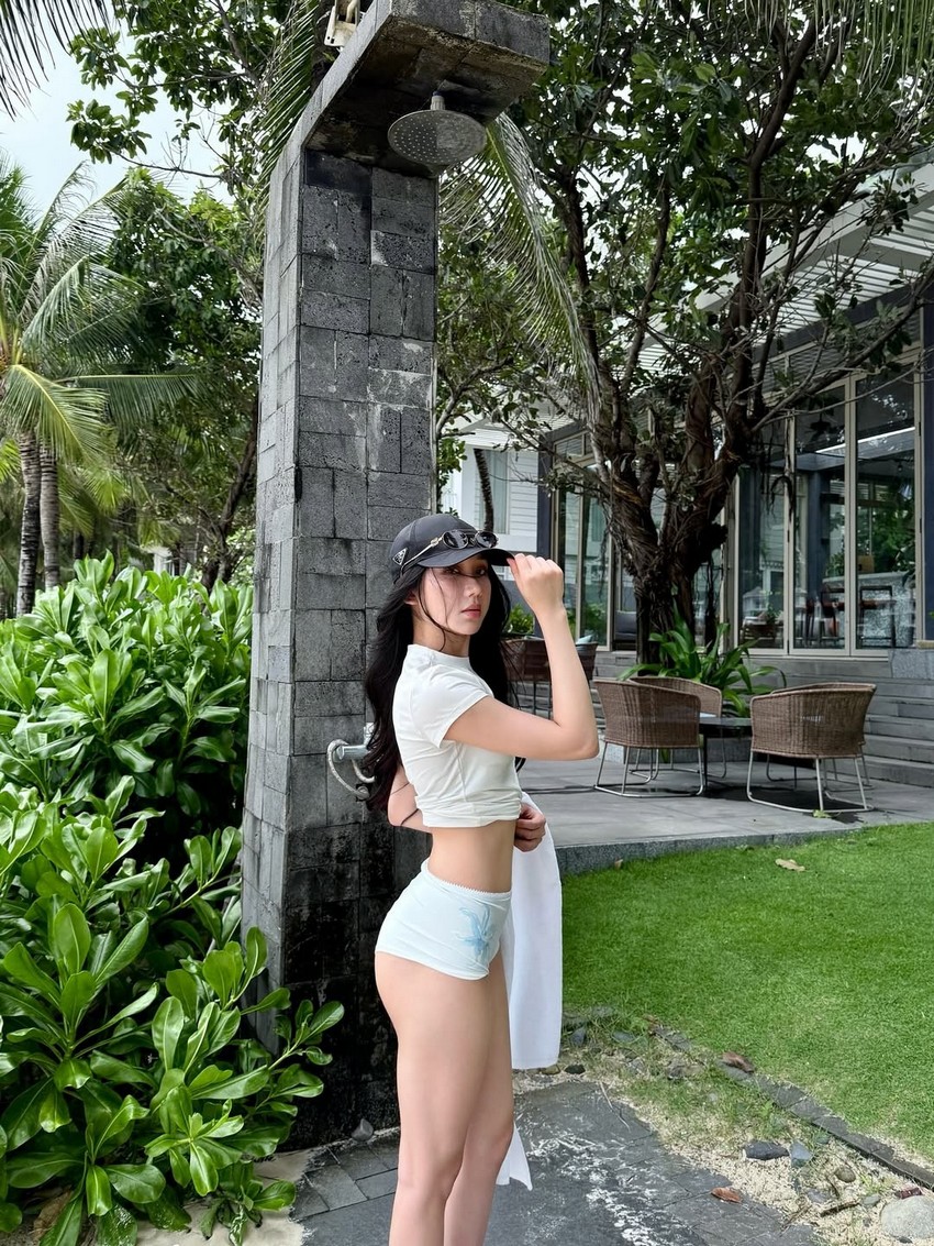 Trong bộ ảnh mới nhất, Mina Young xuất hiện trong set đồ bơi màu trắng, khoe trọn vòng eo săn chắc đáng mơ ước. Thiết kế quần siêu ngắn được cô nàng lựa chọn đã trở thành điểm nhấn, giúp tôn lên đường cong cơ thể và tạo nên sức hút khó cưỡng. Kết hợp cùng mũ lưỡi trai và kính râm sành điệu, nữ streamer toát lên vẻ năng động, cá tính nhưng không kém phần quyến rũ.