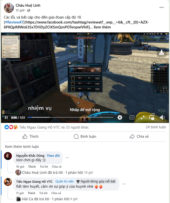 VTC cũng tích cực hỗ trợ qua group, khuyến khích game thủ góp ý để hoàn thiện trước Open Beta. Nếu bạn đam mê kiếm hiệp, hãy join ngay để không bỏ lỡ quà tặng và sự kiện đặc biệt.
