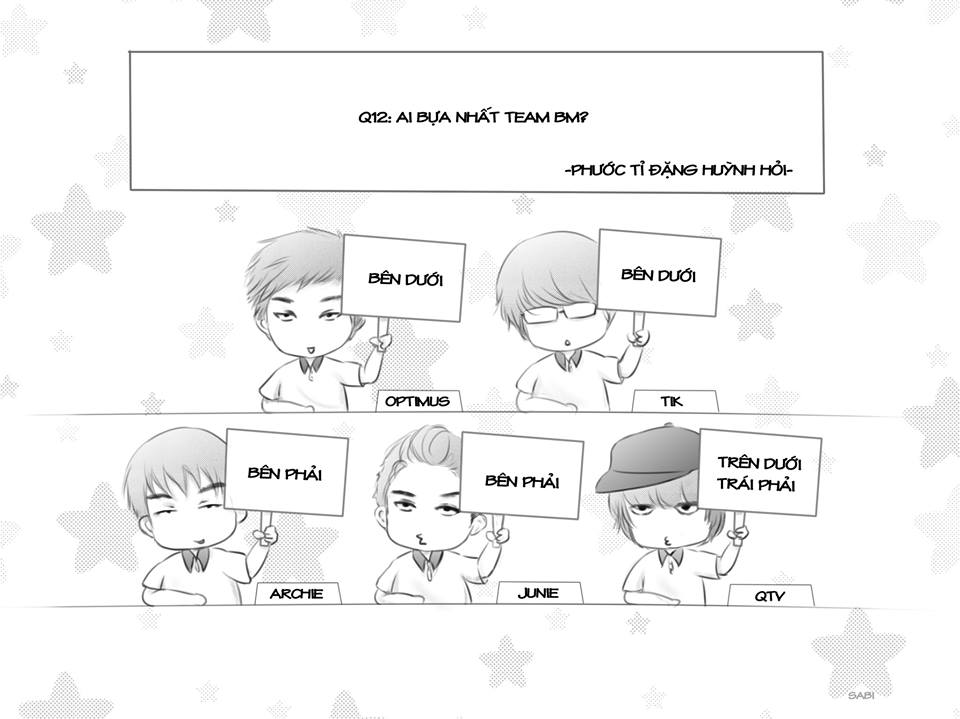 Một loạt các câu hỏi dành cho các thành viên trong đội tuyển Boba Marines được lồng vào những hình ảnh chibi đầy ngộ nghỉnh quả thực khiến người khác phải cười nghiêng ngả. Thêm vào đó là sự nể phục tác giả của loạt ảnh này, không chỉ có khiếu nghệ thuật mà chắc hẳn cũng là một người rất hâm mộ đội tuyển Boba Marines.