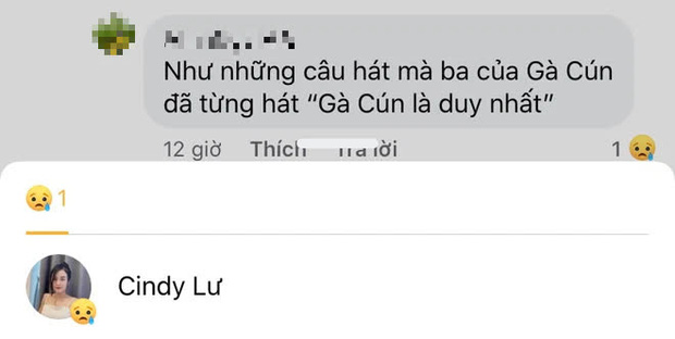 Sau khi được người này nhắc về những câu hát mà Hoài Lâm từng dành tặng con gái, Cindy Lư chỉ thả "sad" mà không nói gì thêm