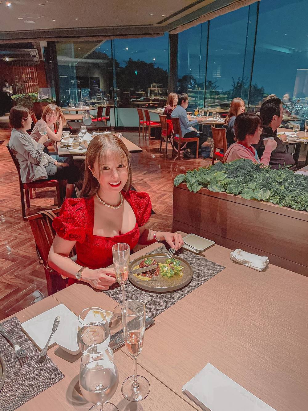Cô thường xuyên được chồng đưa tới ăn uống tại những nhà hàng sang trọng