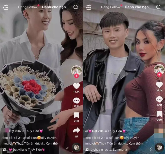 Sự việc còn chưa lắng xuống thì gần đây, nhiều người không khỏi "ngã ngửa" khi xuất hiện clip tổng hợp loạt ảnh ghép đôi giữa Đạt Villa và Thùy Tiên. Đính kèm đoạn clip, chủ nhân tài khoản này còn để lại phần mô tả: "Đẹp đôi số 2 không ai số 1 luôn. Đẩy thuyền mọi người ơi".