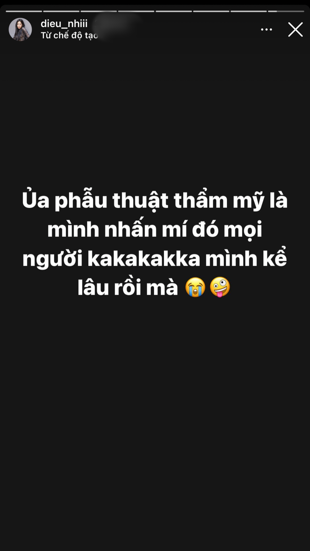 Sau lời thổ lộ đó, nhiều người đoán mò về bộ phận mà cô đã chỉnh sửa. Trong lúc mọi người còn mải mê "đoán giá đoán non" thì người trong cuộc đã chính thức lên tiếng. Mới đây, Diệu Nhi đã đăng tải dòng trạng thái trên trang cá nhân với nội dung: "Ủa phẫu thuật thẩm mỹ là mình nhấn mí đó mọi người. Mình kể lâu rồi mà". Ngoài ra, các fan cũng dành lời khen cho Diệu Nhi vì can đảm công khai phẫu thuật thẩm mỹ ngay trong đám cưới của bản thân.