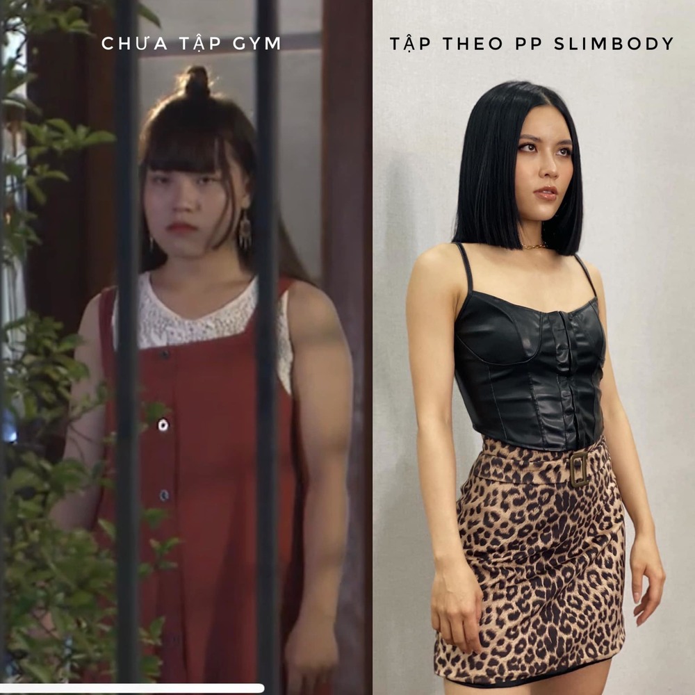 Cô tự đăng ảnh so sánh, cho thấy sự thay đổi lớn về vóc dáng của mình sau 2 tháng tập gym