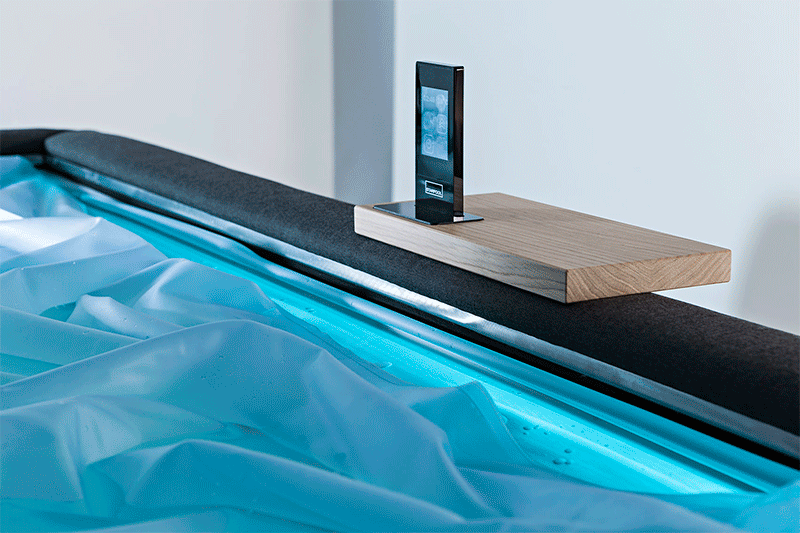 Không như các giường nước cổ điển với nước được bơm đầy vào bên trong lớp đệm. Zerobody sử dụng nước như là một nhân tố trang trí, phao nước được đặt vào bên trong một bộ khung đệm đẹp mắt và sang trọng, khi bạn leo lên và nằm vào thì toàn bộ cơ thể sẽ được bao bọc bởi làn nước ấm áp. Mang lại cho người dùng cảm giác như đang ngâm mình trong bồn tắm mà chẳng phải dính một chút nước nào.