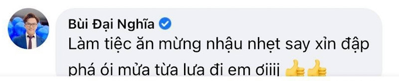 Dưới bài đăng của Huỳnh Lập, Đại Nghĩa rủ rê mở tiệc tưng bừng ngày kỷ niệm cặp đôi bên nhau. Anh cho rằng để có thể đi đến chặng đường này không phải ai cũng có thể, thế nên phải cho bạn bè "ăn ké" lấy lộc.
