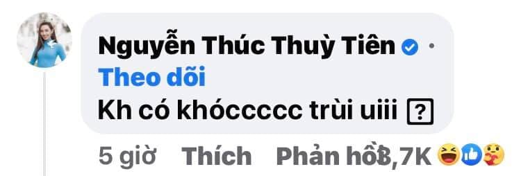 Trước sự hiểu lầm của dư luận, Thùy Tiên nhanh chóng đính chính ngay sau đó. Nàng Hậu khẳng định rằng, lúc đó mình không hề khóc mà chỉ dụi mắt một tí thôi. "Không có khóc trời ơi", câu trả lời Thùy Tiên cho thấy chính cô cũng bất ngờ vì hình ảnh dụi mắt của mình lại gây hiểu lầm như thế.
