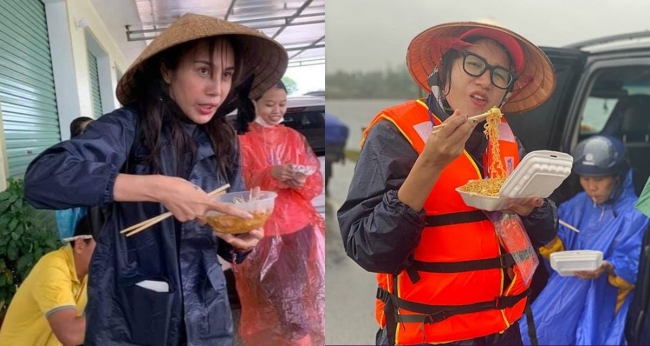 Xoay quanh việc nghệ sĩ bị yêu cầu sao kê minh bạch tiền từ thiện kêu gọi được, những câu chuyện bên lề trong quá trình làm từ thiện của nghệ sĩ cũng được mạng ra bàn tán, từ việc người nổi tiếng có thái độ, cách ăn nói, tư thế trao tiền như thế nào khi làm từ thiện cũng đều không tránh được ánh mắt bình phẩm. Trong số đó, dân mạng tìm ra được một điểm chung đó là các nghệ sĩ thường xuyên đăng ảnh hoặc video ăn mì tôm khi đi phát quà ở vùng sâu, vùng xa, lũ lụt.