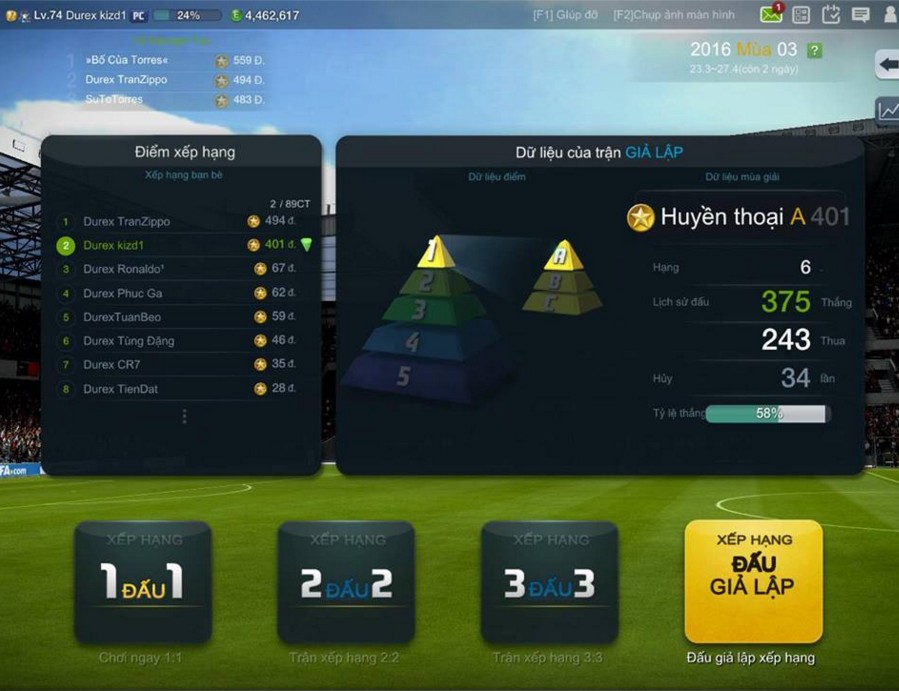 Tiếp tục lại đến với chiến thuật top Giả lập xếp hạng FO3. Nếu như hai bài trước đội hình để leo top 10 xếp hạng khá vip thì ở bài này chúng ta sẽ nhận ra đội hình khá xoàng và việc đạt hạng 6 cho thấy tư duy chiến thuật cực nhạy bén của anh chàng này. Và dĩ nhiên lại là 1 thành viên của team Durex - team giả lập xếp hạng số 1 hiện nay ở Việt Nam.